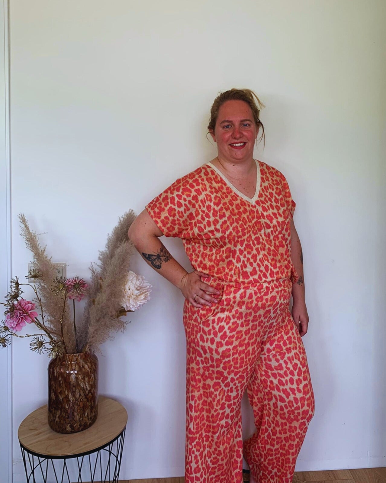 Stap de zomer in met lef én kleur met de Sunset Safari Set. Deze luchtige co-ord met een vrolijke panterprint in roze- en oranje tinten is dé eyecatcher van het seizoen. Gemaakt van heerlijk soepel vallende stof, waardoor je er niet alleen fantastisch uitziet, maar je ook super comfortabel voelt.